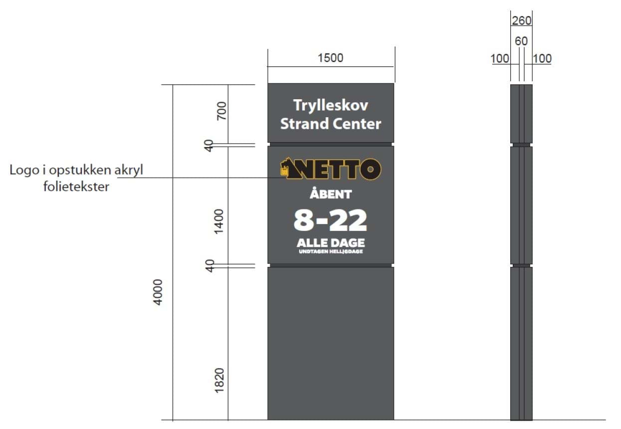 Figuren her viser et eksempel på en tilladt pylon for lokalcentret Trylleskov Strand Center.